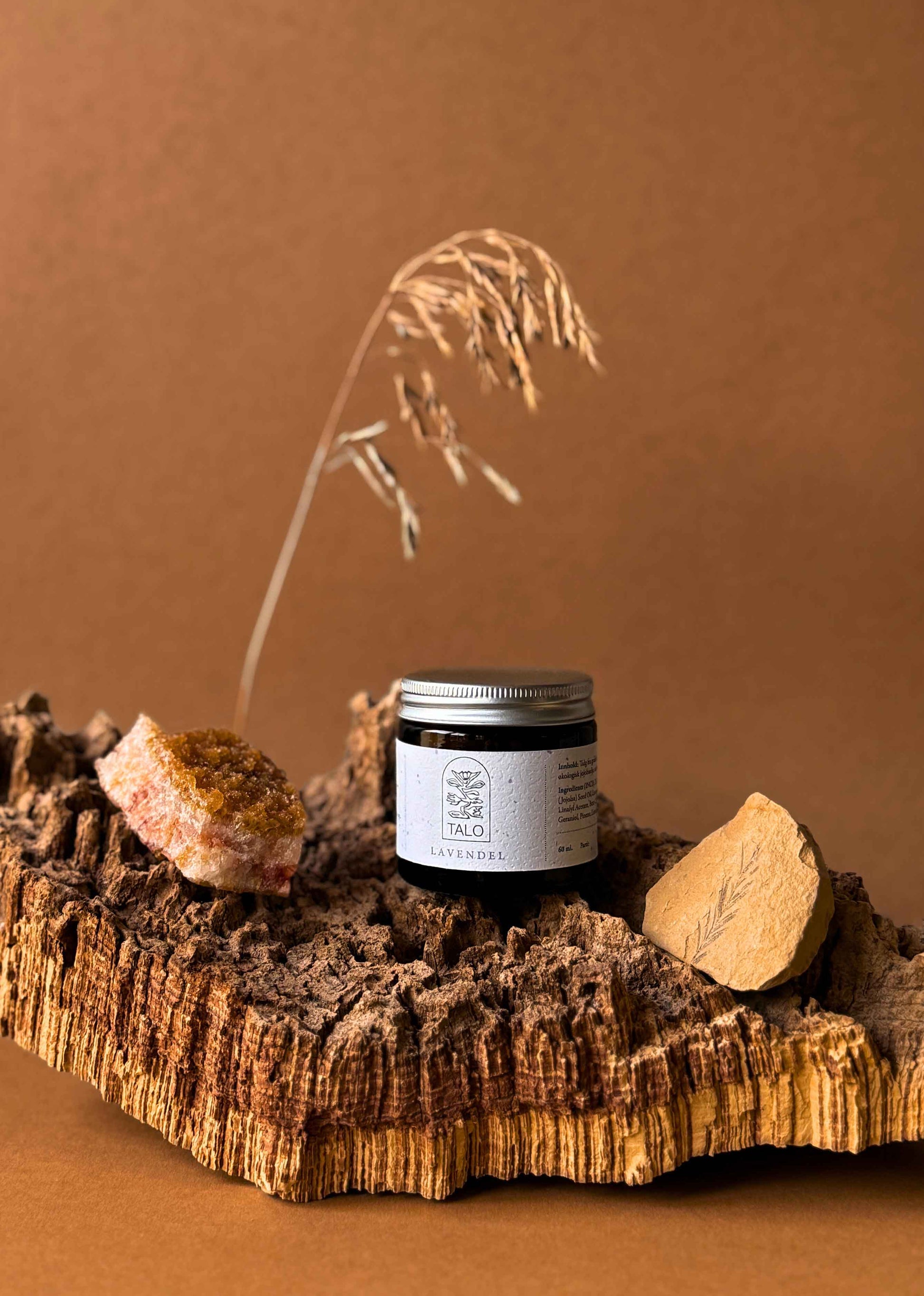 Innhold: Talg fra grasfòra dølafe på Nerøygarden, økologisk jojobaolje, økologisk eterisk lavendelolje.